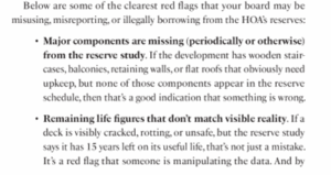 And between chapters, HOA HELL features short gray-page inserts that provide quick lessons on discrete issues. These pages cover everything from how to recognize selective enforcement to how to read a reserve study correctly. They are easy to find, easy to understand, and immediately usable. Many readers flip to these inserts first because they distill complex topics into clear, step-by-step instructions.