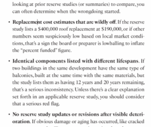 • Audit financial disclosures and reserves to detect manipulation before a special assessment appears.